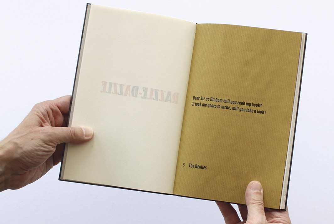 “Dear Sir or Madam will you read my book? It took me years to write, will you take a look?” – indicates this. In fact, it was partly my goal to encourage the book’s viewer to read the texts. Embedded in the